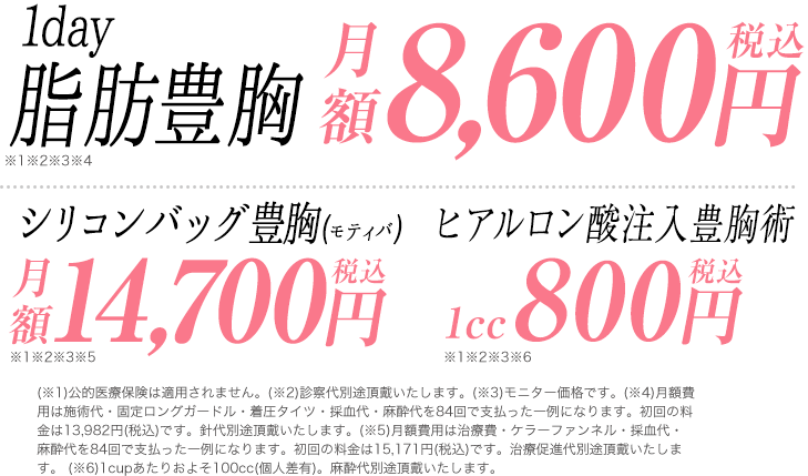 - ・脂肪を用いる豊胸術の再施術は、安全に脂肪が取れる範囲で対応を行ないます。