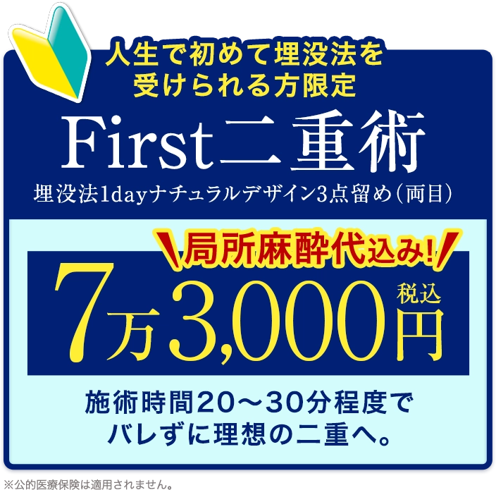 ※二重埋没法¥73,000~¥286,000(税込)※施術の副作用:痛み・ゴロゴロ感・腫れ・内出血を伴う場合がございます。※公的医療保険は適用されません。